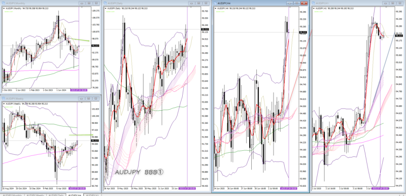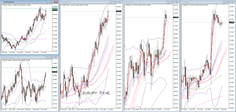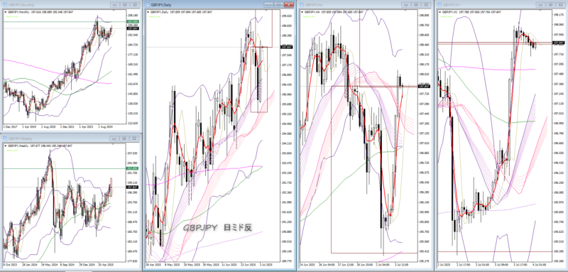 06/30~07/04日々の記録と振り返り FX 2025.06.302025.07.05 7月4日(金) 注目通貨 AUDJPY GBPJPY EURJPY 環境認識 BBB① 月足ミドルまで空間あり(お迎え気味)・月足、週足MAサンド 1時間4時間待ち 月足空間あり・週足BBB① 下位でチャンスあれば *ぴよが出なかったら入らない どこまで行くのか こちらも 監視 月足2σまでは空間あり・週足BBタッチ 監視 月足空間あり・週足BBタッチまであと少し 監視 月足・週足まだ空間はある 様子見 振返りと結果 ノートレ 前へ次へ 123456