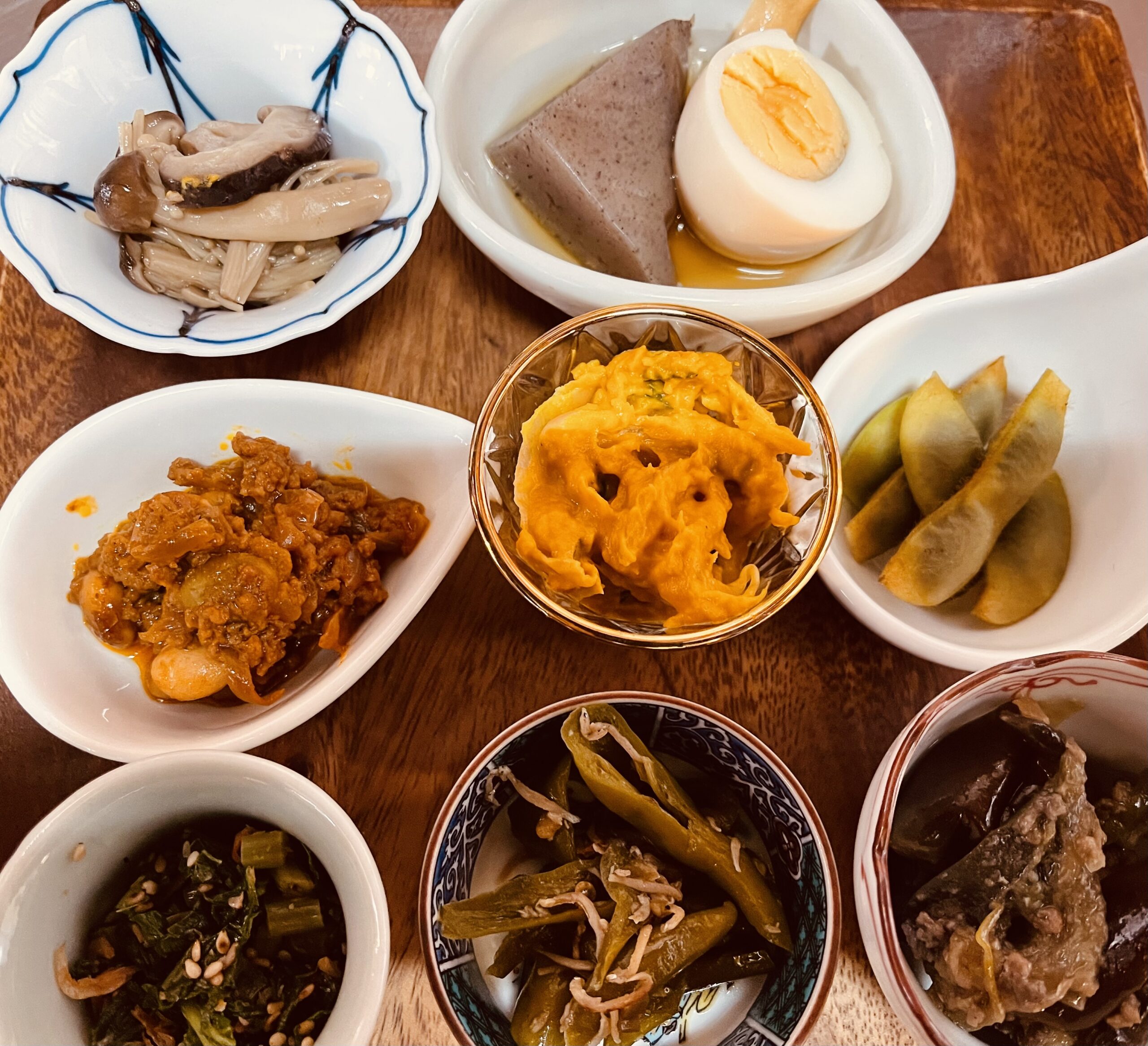 10月29日~11月1日 今週のランチ おばんざい 2025.11.03 10月29日(水) 前菜 なます きのこのうま煮 枝豆 青唐辛子とじゃこの炒め 茄子の肉味噌 おでん チリコンカン かぼちゃのサラダ 大根と干しえびの炒め グリーンサラダ 主菜 カツカレー 海老フライカレー 汁物 豆腐とわかめの味噌汁 次へ 1234