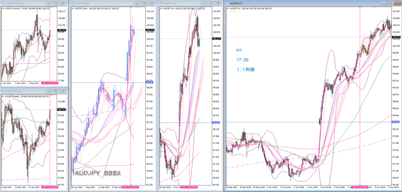 10/6~10/10 日々の記録と振り返り FX 2025.10.062025.10.12 10月8日(水) 注目通貨 日経 CHFJPY EURJPY AUDJPY GBPJPY 環境認識 月足・週足BW 4時間待ち 4時間がだいぶ伸びてるので4時間を待ってからの上位次第でどれか1通貨 ドル円とカナ円は上位抵抗帯があるので除外 振返りと結果 AUDJPY 1:1利確 前へ次へ 12345