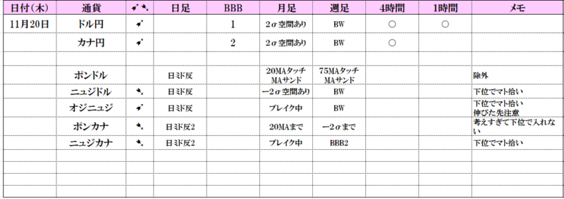 日足ブレイク1日目・月足2σ空間あり・週足BW中