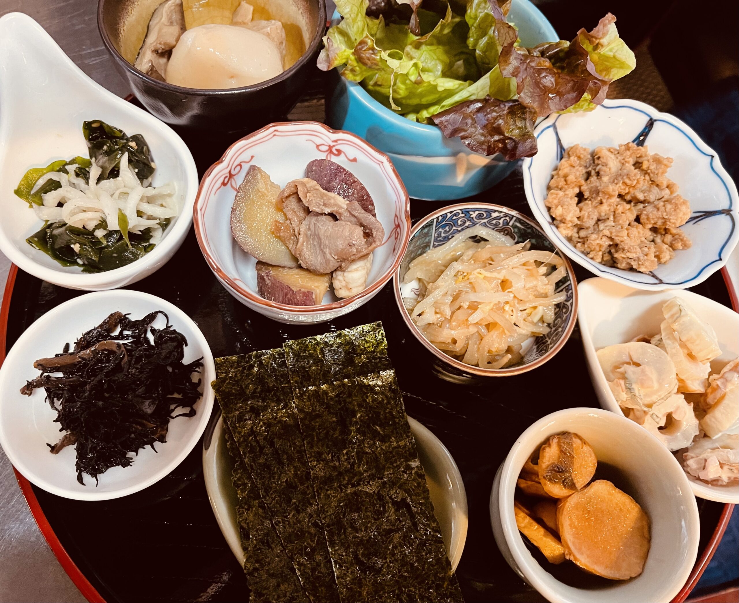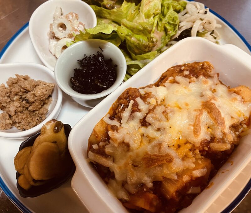 12月17日~12月20日 今週のランチ おばんざい 2025.12.21 12月17日(水) 前菜 切り干し大根とわかめのナムル 菊芋の酢醤油漬け 肉味噌 竹輪と紅生姜のからしマヨ さつま芋と豚バラの甘辛煮 ピリ辛もやし グリーンサラダ 佃煮 海苔 主菜 里芋と白菜のミートグラタン ぶり大根 汁物 あさりの味噌汁 次へ 1234